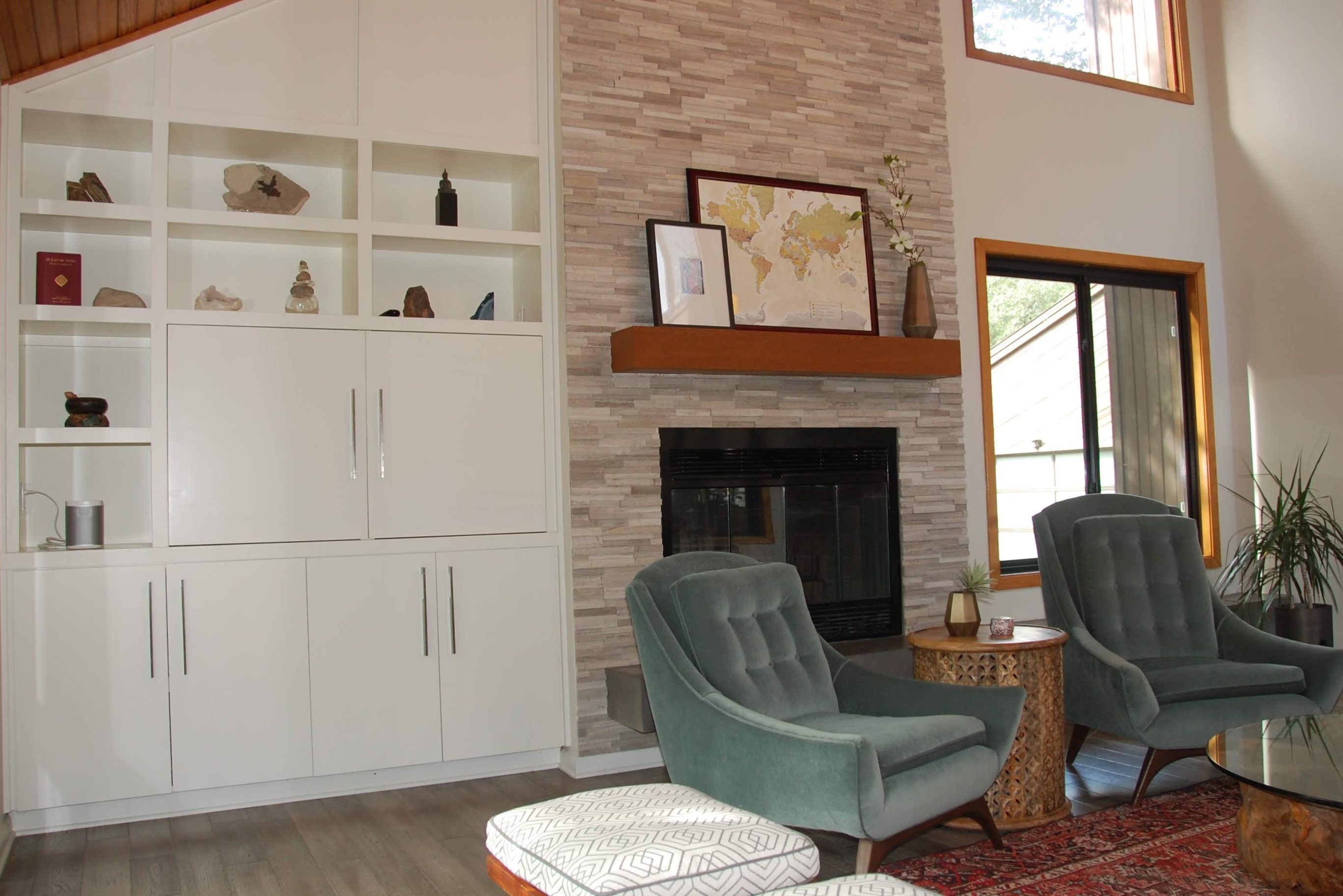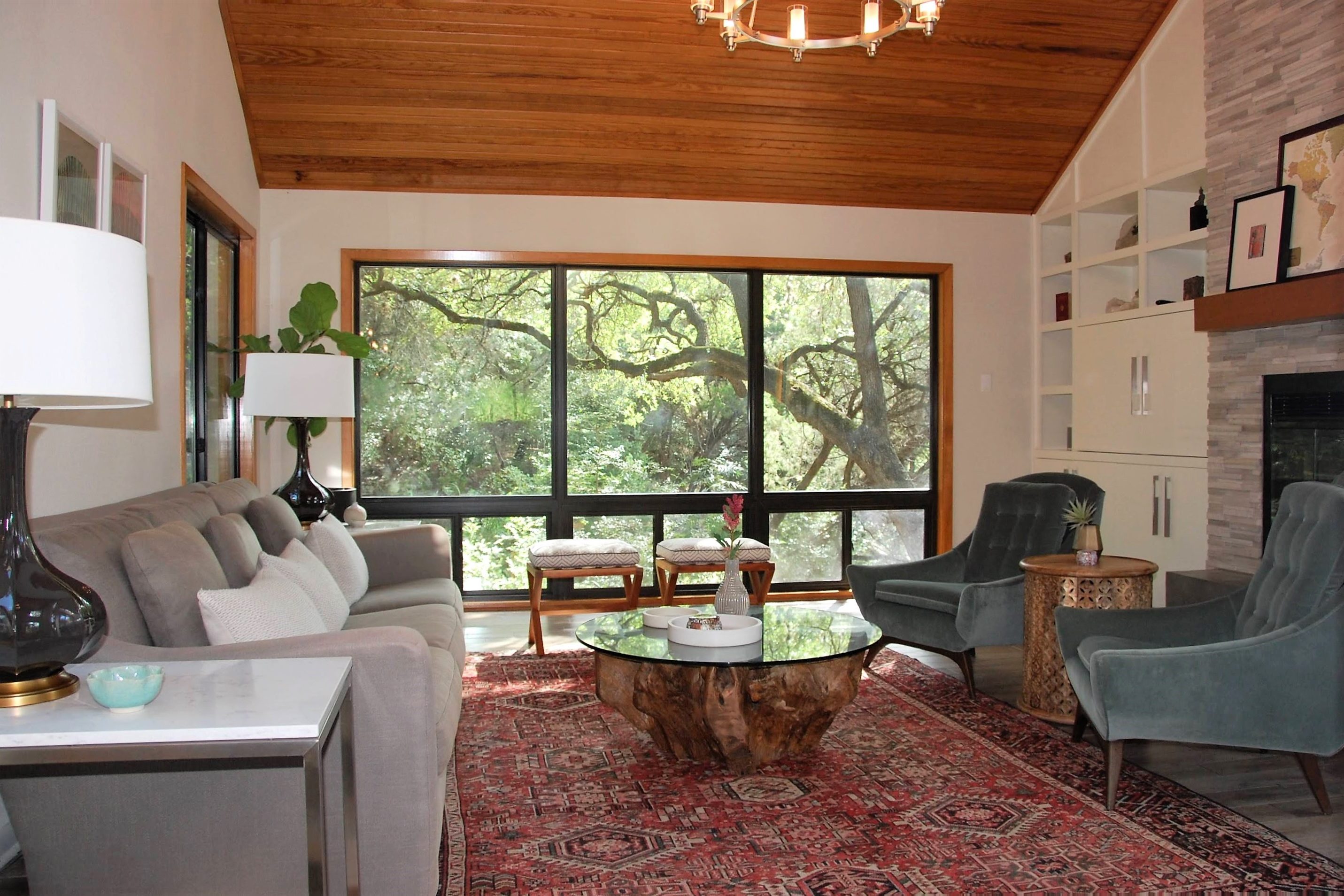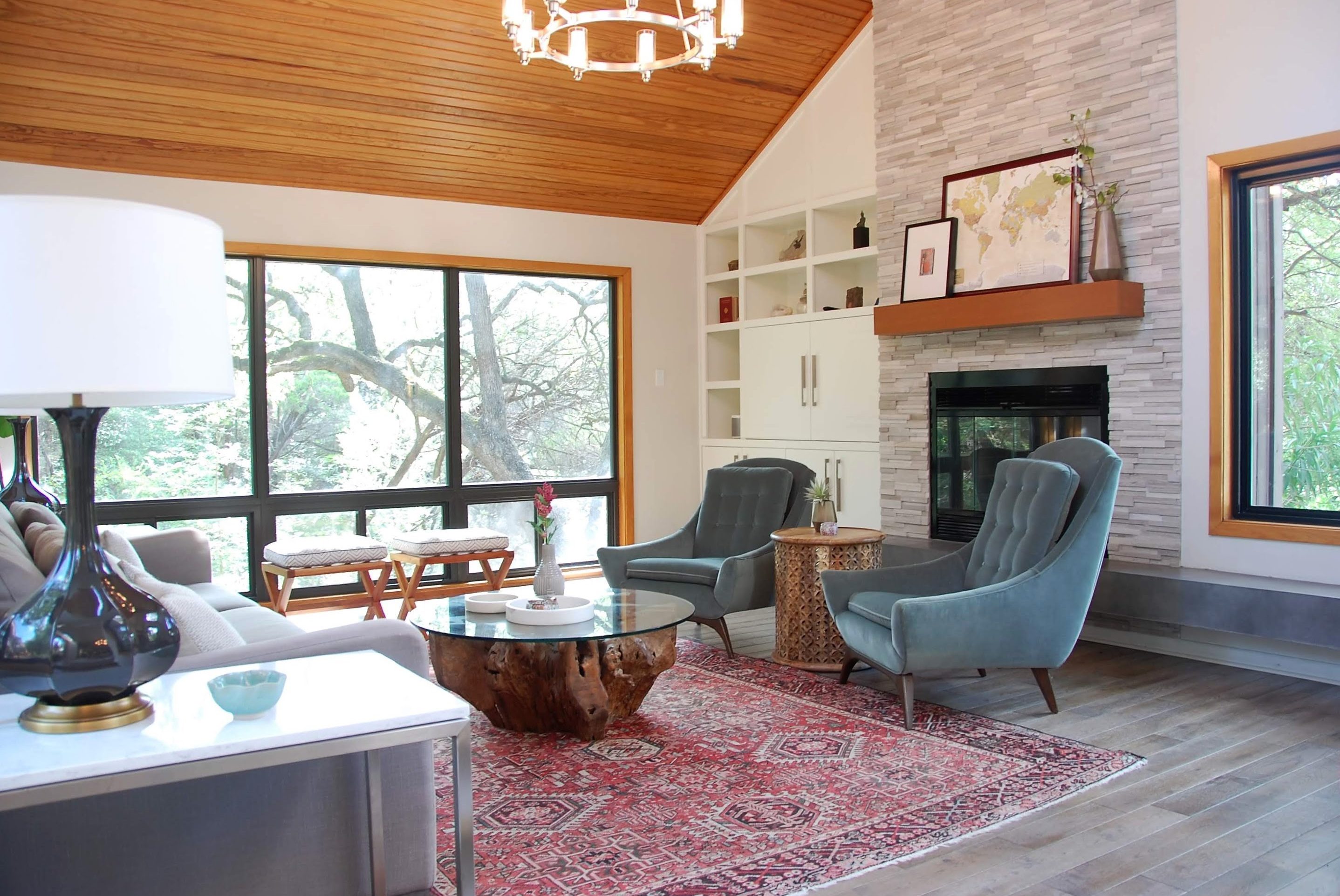 Nestled among the trees in west Austin, this home has been carefully renovated to highlight its existing architecture and stunning views. Custom cabinetry improves functionality, while updated furniture and finishes create a cohesive and polished aesthetic.